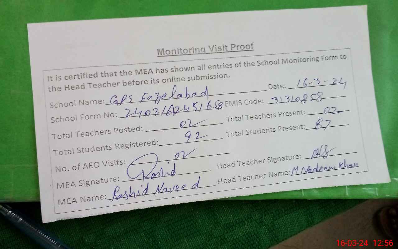 | EMIS Code: 31310858 | Name of School: GPS FAZAL ABAD | |||