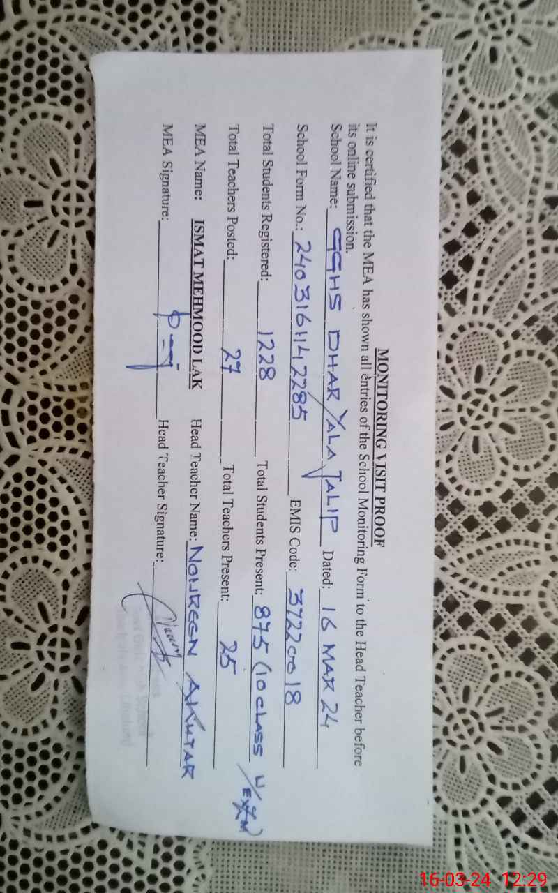 | EMIS Code: 37220018 | Name of School: GGHS DHARIALA JALIB | |||