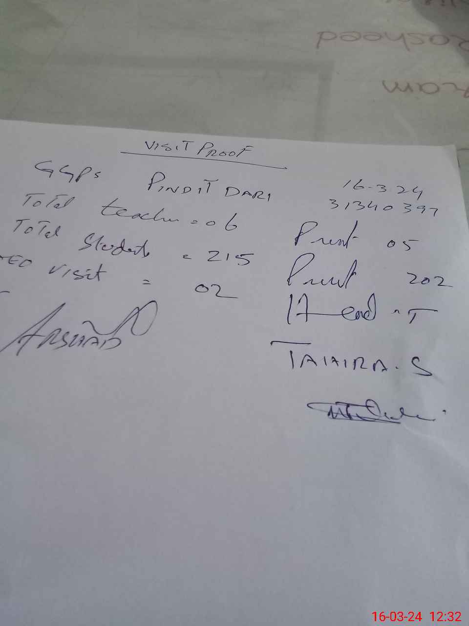 | Name: TA**** SH**** Designation: (School Headmaster's/Headmistress's) PST/PTC/JV Phone/Cell Number: 03**** |