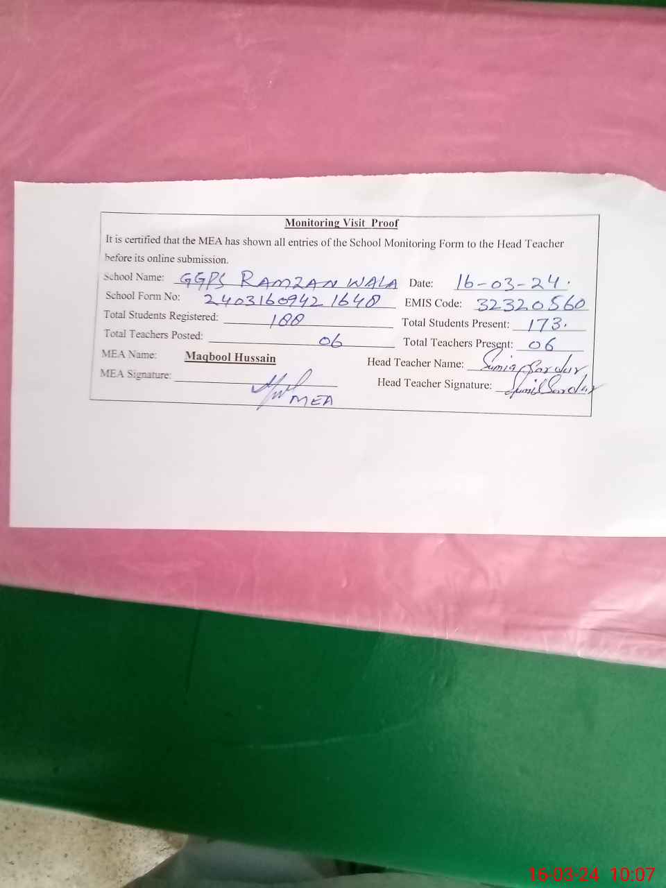 | EMIS Code: 32320560 | Name of School: GGPS RAMZAN WALA | |||