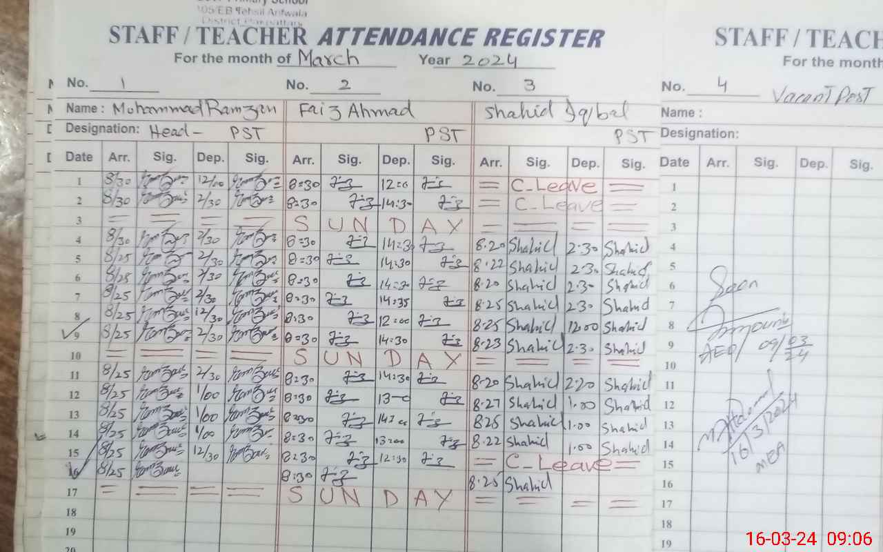 | Name: MU**** RA**** Designation: (School Headmaster's/Headmistress's) PST Phone/Cell Number: 03**** |