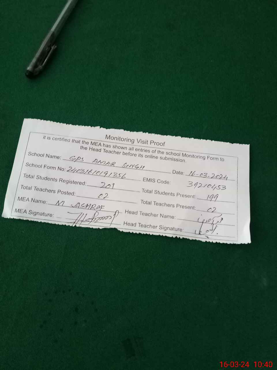 | EMIS Code: 39210453 | Name of School: GPS AMAR SINGH P/O 26/S.P PAKPATTAN | |||
