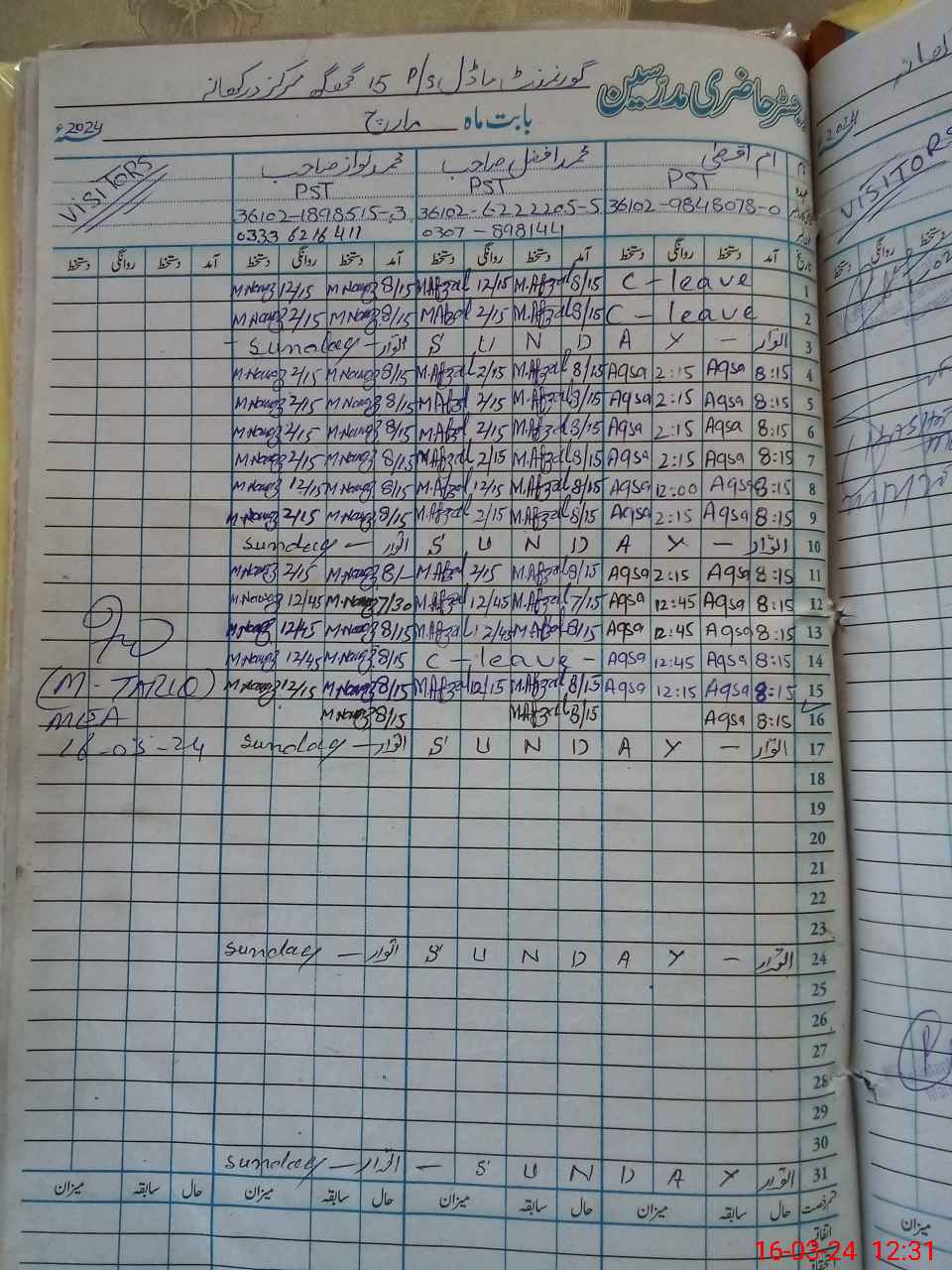 | CNIC | Full Name | Designation | R/C | Absence During Last Calender Month |