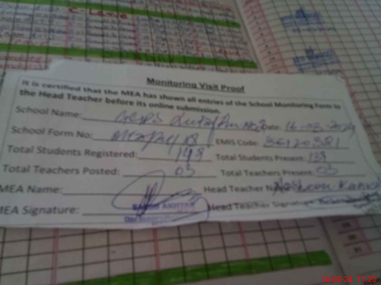 | Certified that this School was Inspected by the Undersigned MEA/DMO Today and the Information Stated Above is as Per Record. | |||||