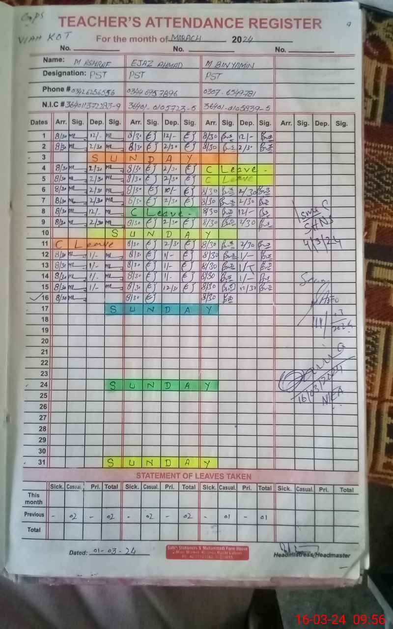 | Name: MU**** AS**** Designation: (School Headmaster's/Headmistress's) PST Phone/Cell Number: 03**** |