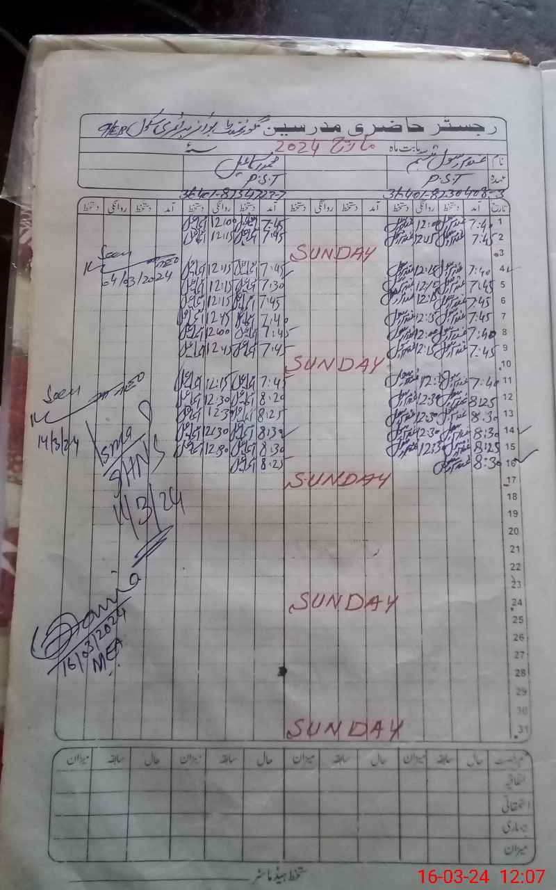| Name: MU**** IS**** Designation: (School Headmaster's/Headmistress's) PST Phone/Cell Number: 03**** |