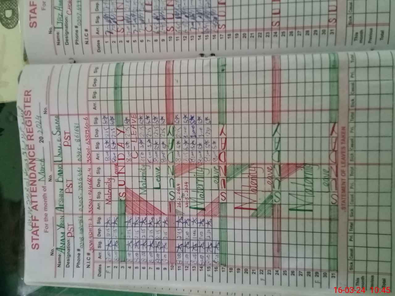 | 35**** | Af**** Ba**** | PST | Regular | 5 | 0 | 0 | 5 | 0 | 0 | 0 | 0 | 0 | Maternity |