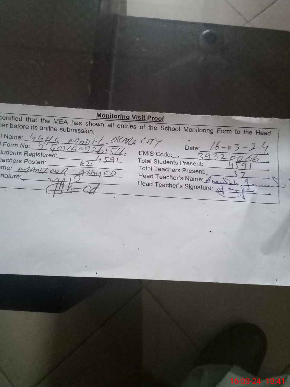 | EMIS Code: 39320066 | Name of School: GGHS MODEL OKARA CITY | |||