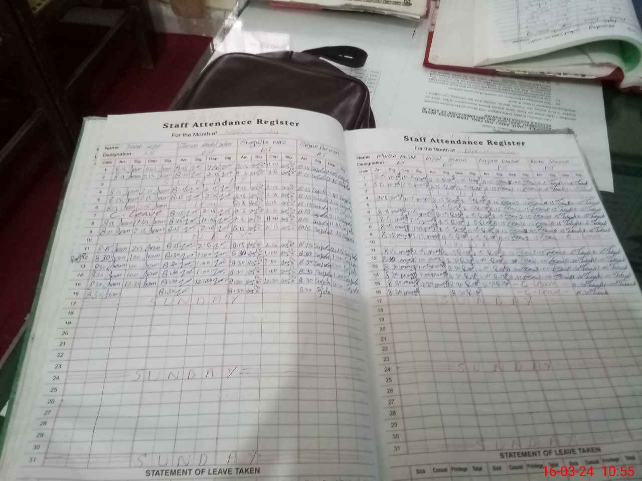 | Leave | Duty | Absent | Maternity | Medical | Ex- Pak |