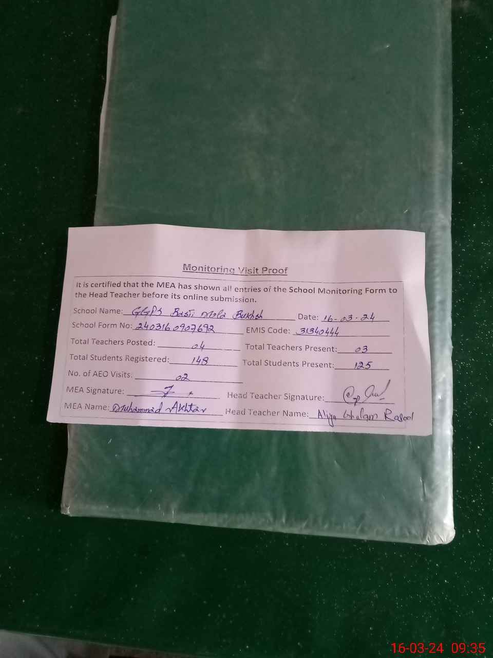 | EMIS Code: 31340444 | Name of School: GGPS BASTI MOLA BUKHSH | |||
