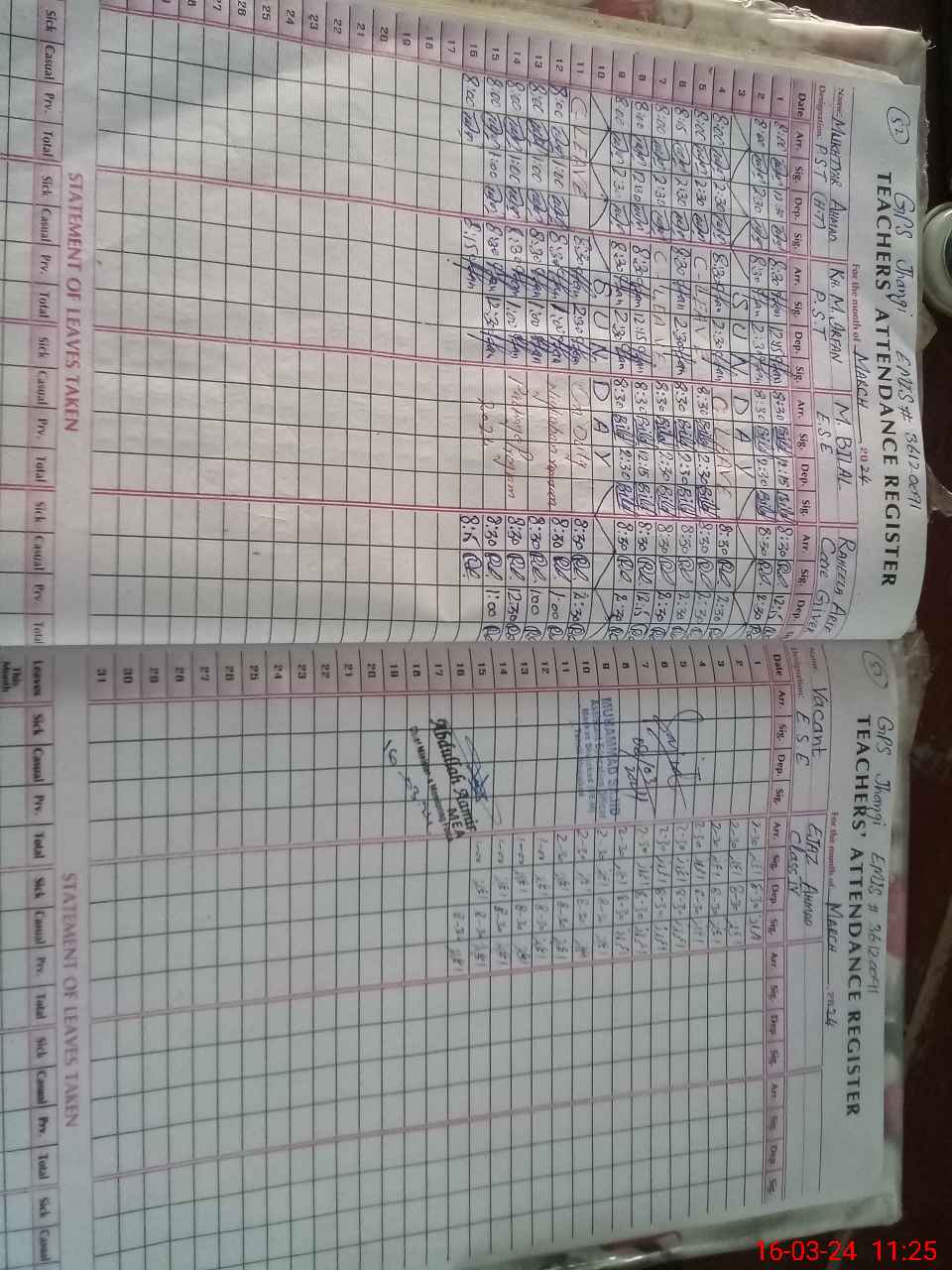 | Name: MU**** AH**** Designation: (School Headmaster's/Headmistress's) PST/PTC/JV Phone/Cell Number: 03**** |