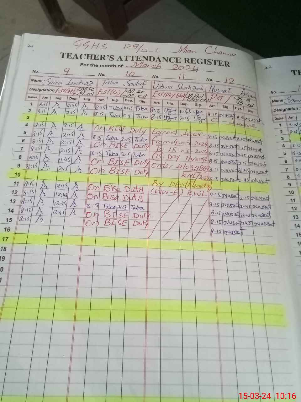 | EMIS Code: 36430042 | Name of School: GGHS 129/15-L, MIAN CHANNU | |||