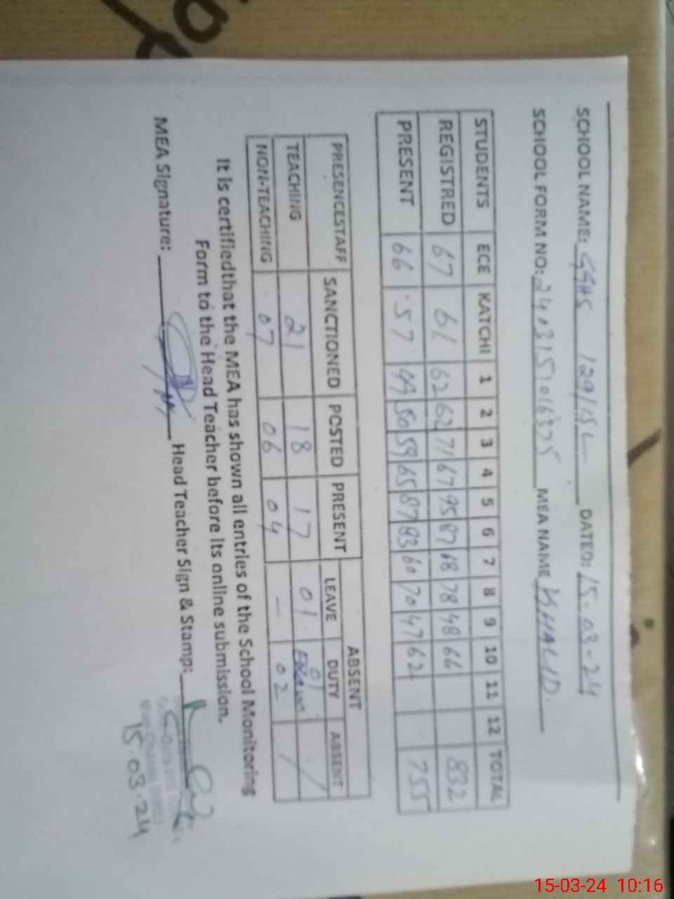 | Certified that this School was Inspected by the Undersigned MEA/DMO Today and the Information Stated Above is as Per Record. | |||||