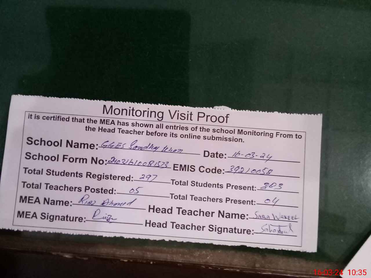 | Certified that this School was Inspected by the Undersigned MEA/DMO Today and the Information Stated Above is as Per Record. | |||||