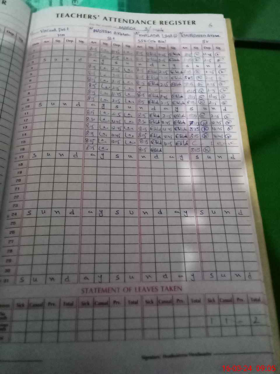 | Name: Kh**** Is**** Designation: (School Headmaster's/Headmistress's) SSE (Bio Chem) Phone/Cell Number: 03**** |