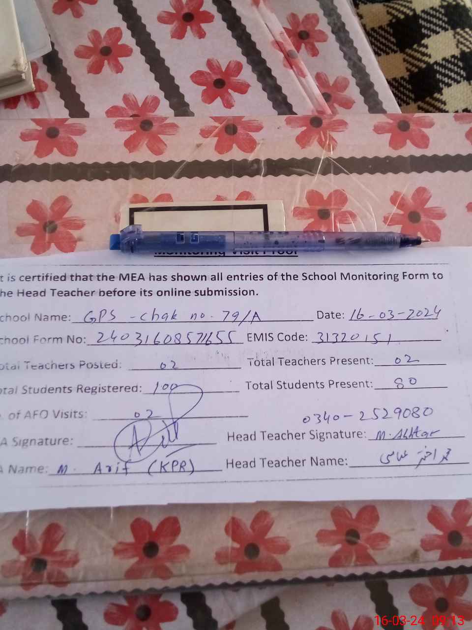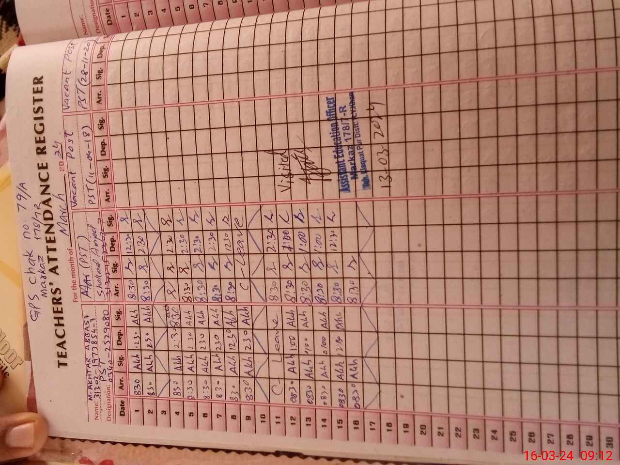 | Name: Mu**** Ak**** Ab**** Designation: (School Headmaster's/Headmistress's) PST Phone/Cell Number: 03**** |