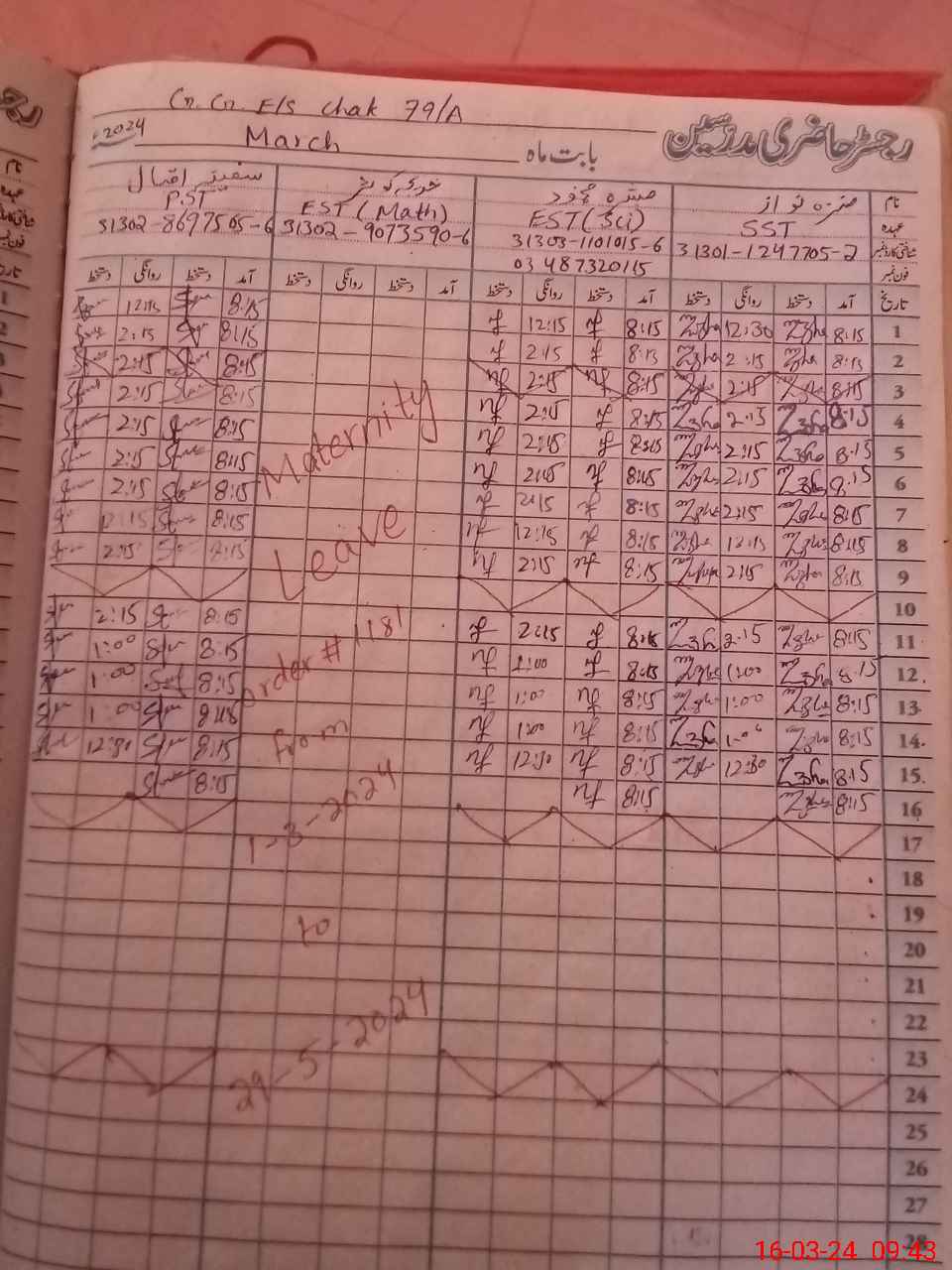 | Leave | Duty | Absent | Maternity | Medical | Ex- Pak |