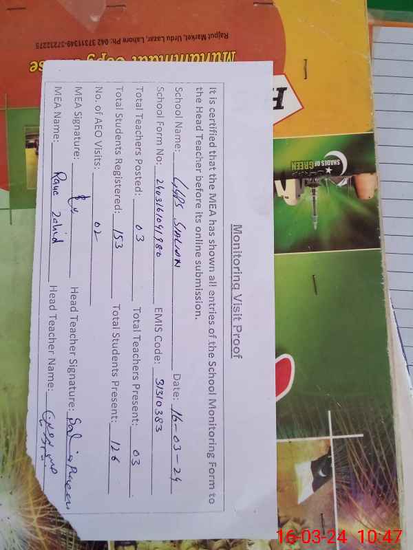 | EMIS Code: 31310383 | Name of School: GGPS SIALAN | |||