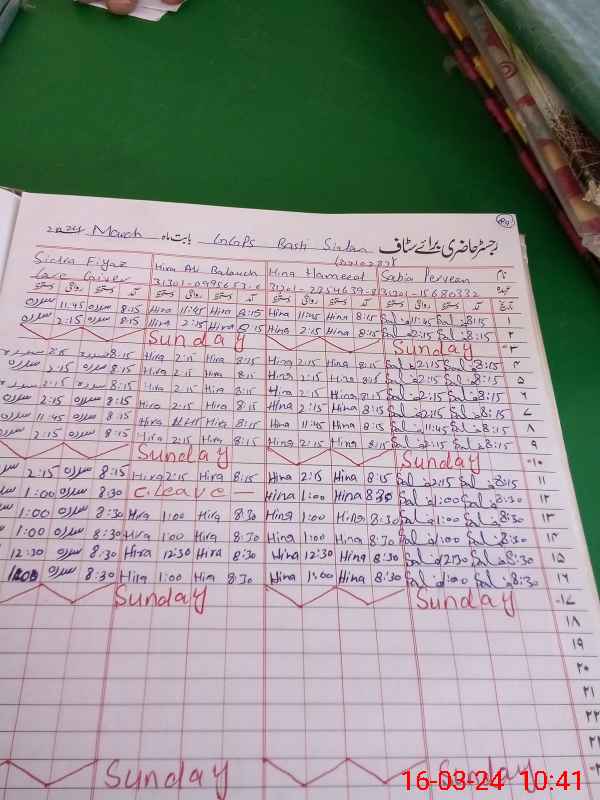 | CNIC | Full Name | Designation | R/C | Absence During Last Calender Month |
