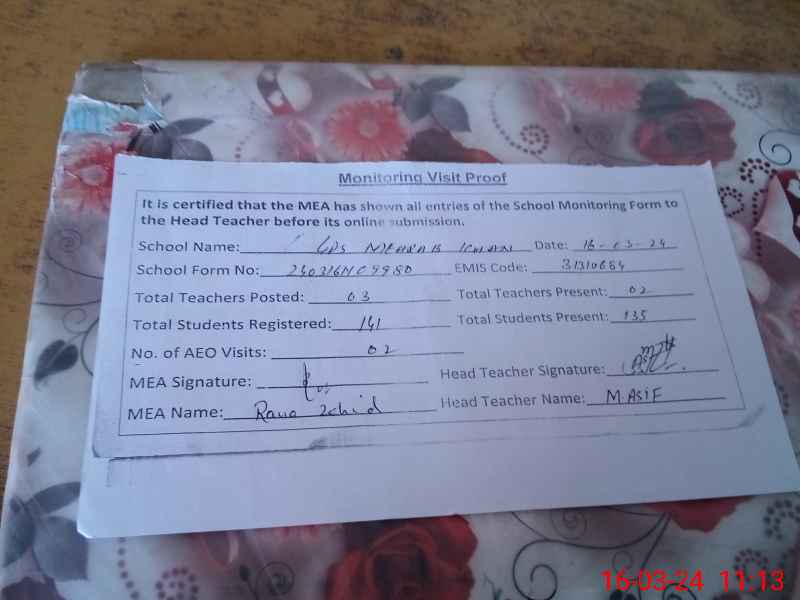 | EMIS Code: 31310684 | Name of School: GPS MEHRAB KHAN | |||