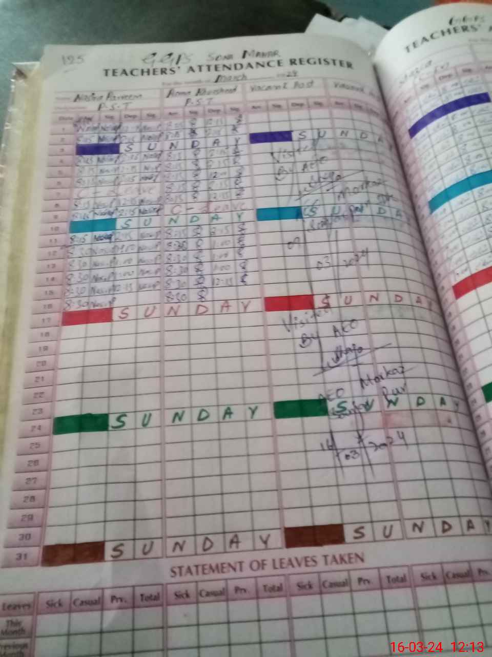 | Leave | Duty | Absent | Maternity | Medical | Ex- Pak |