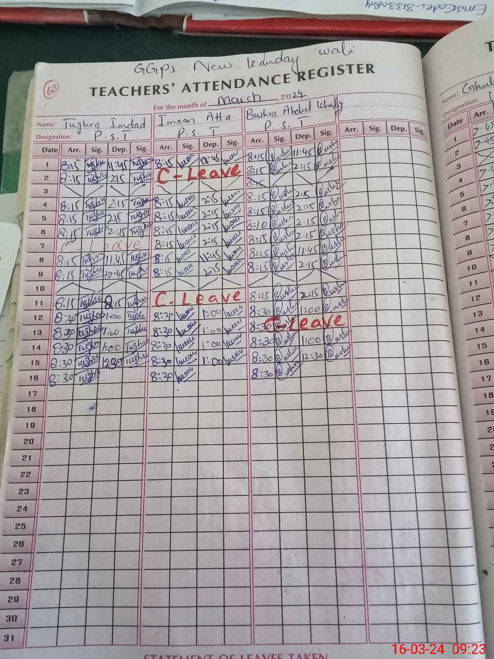 | Leave | Duty | Absent | Maternity | Medical | Ex- Pak |