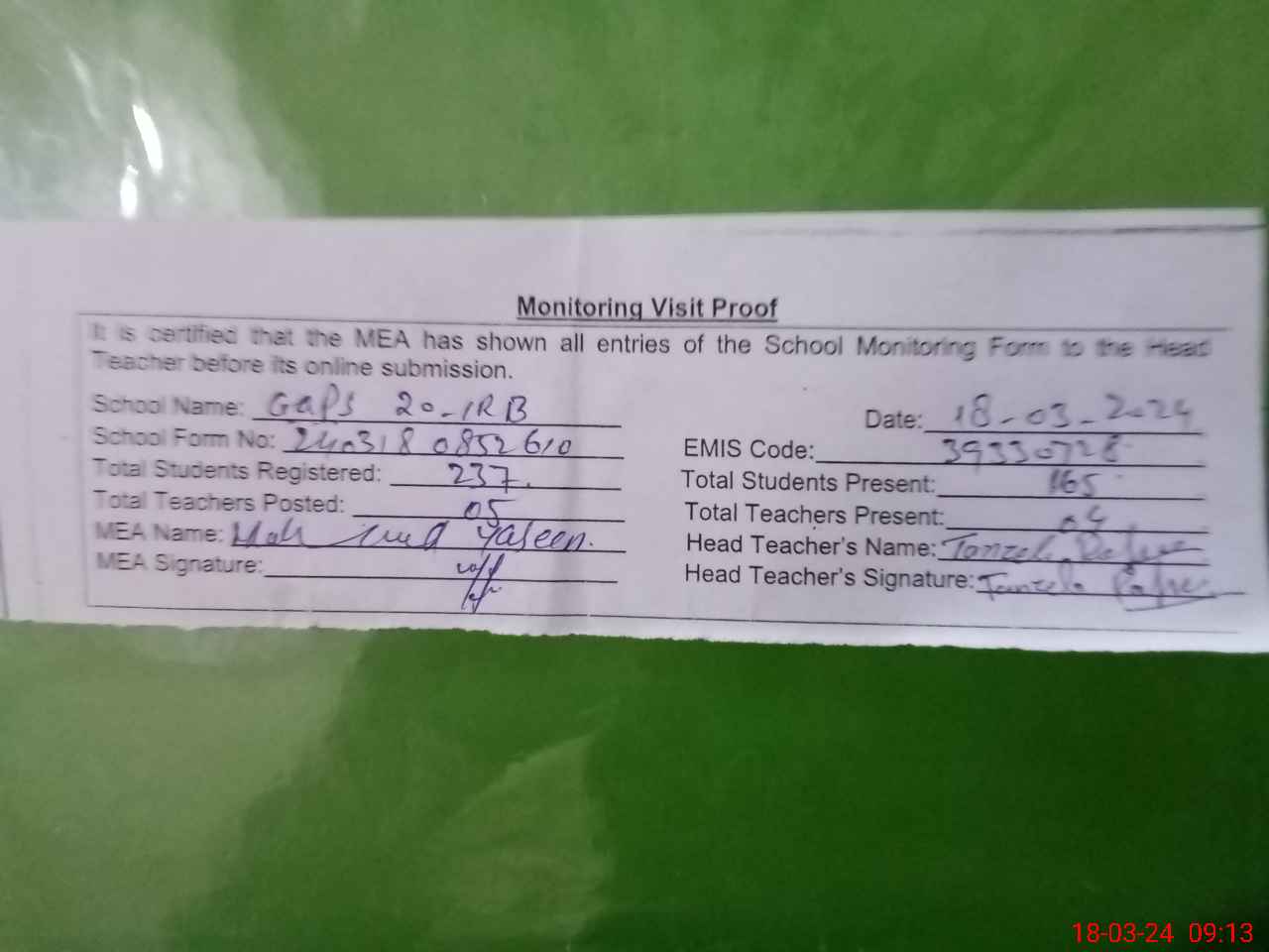 | EMIS Code: 39330728 | Name of School: GGPS CHAK NO. 20/1-RB | |||