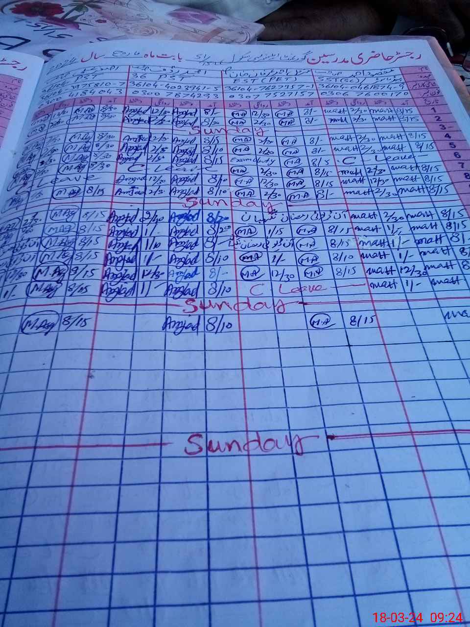 | CNIC | Full Name | Designation | R/C | Absence During Last Calender Month |