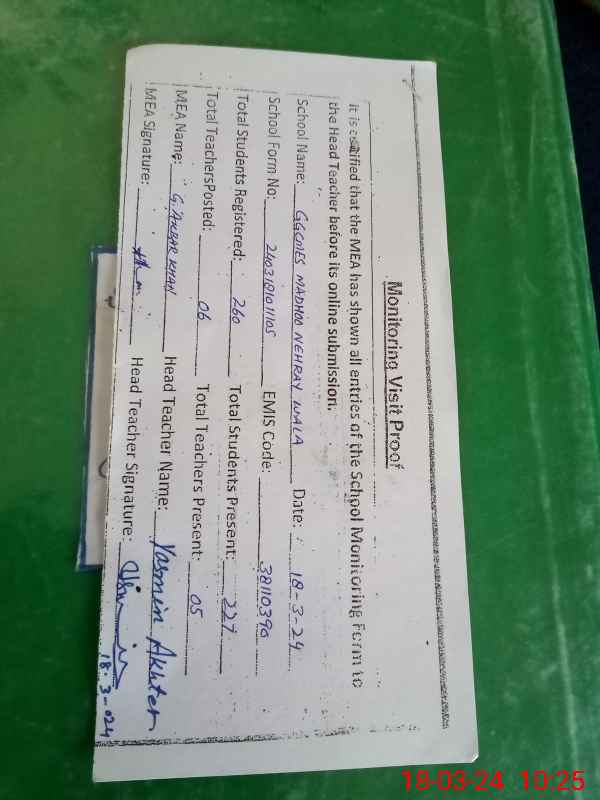 | Certified that this School was Inspected by the Undersigned MEA/DMO Today and the Information Stated Above is as Per Record. | |||||