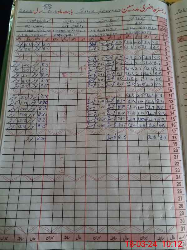 | CNIC | Full Name | Designation | R/C | Absence During Last Calender Month |