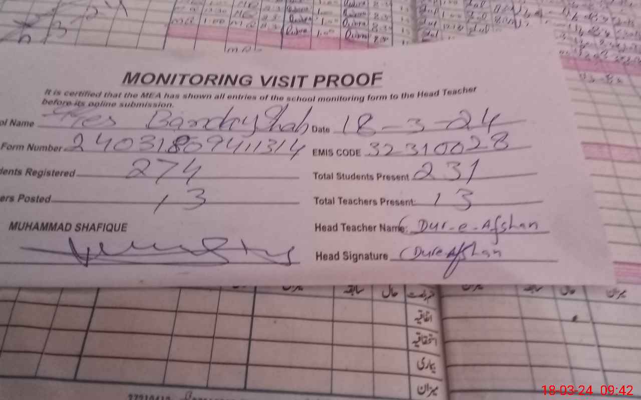 | Attendance Register | Head Teacher | MEA with School | Visit Proof |