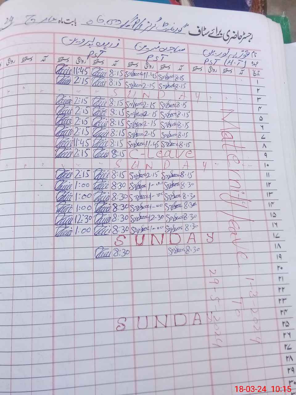| Leave | Duty | Absent | Maternity | Medical | Ex- Pak |