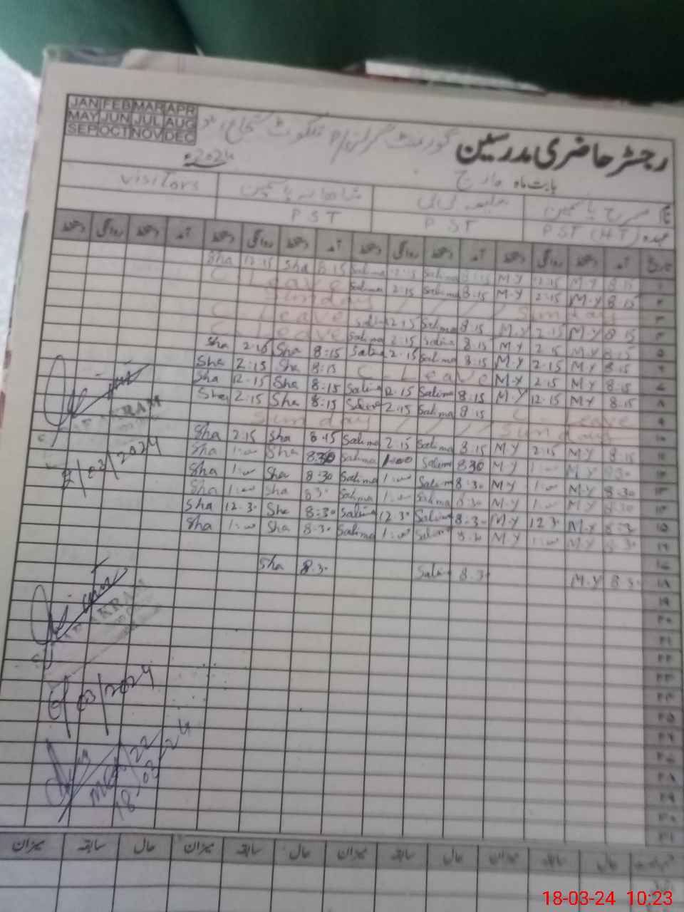 | CNIC | Full Name | Designation | R/C | Absence During Last Calender Month |