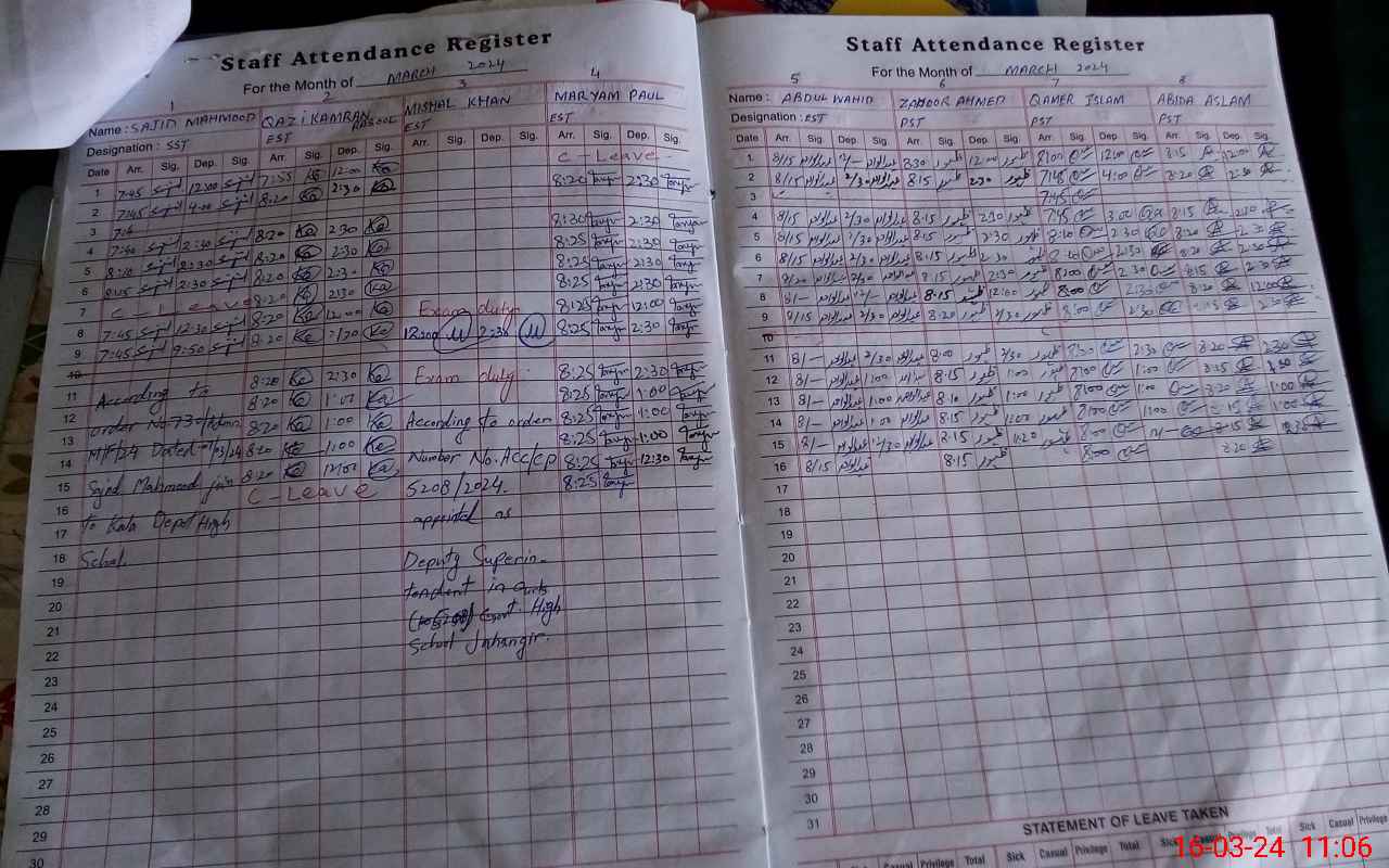 | 37**** | Mi**** Kh**** | 1 | 0 | 29 | 0 | 0 | 0 | 0 | 0 | 0 | 0 | Exam Duty | |