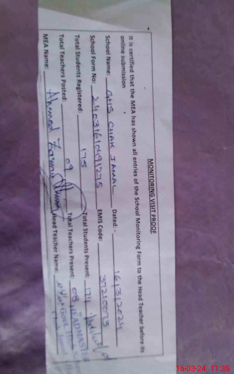 | EMIS Code: 37210073 | Name of School: GHS CHAK JAMAL | |||