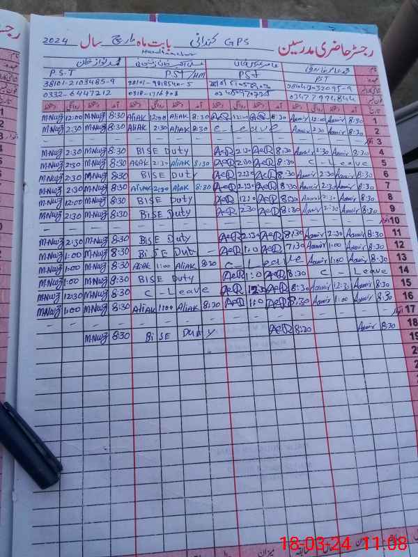 | 38**** | Al**** Ak**** Ra**** Kh**** | PST | Regular | 0 | 0 | 0 | 0 | 0 | 0 | 0 | 0 | 0 | Exam Duty |
