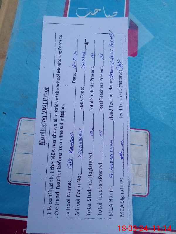 | EMIS Code: 38110285 | Name of School: GPS KANDANI | |||