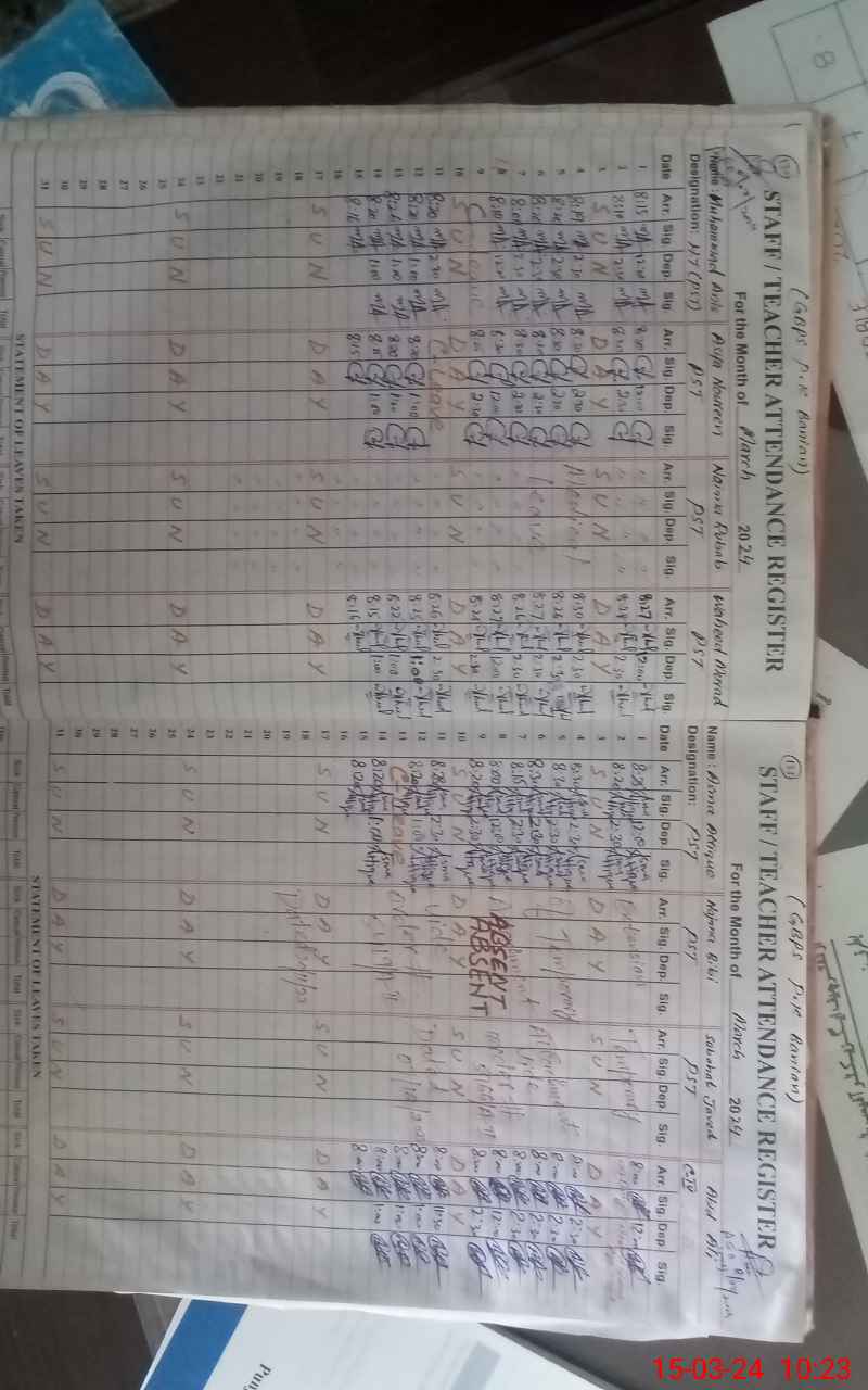 | CNIC | Full Name | Designation | R/C | Absence During Last Calender Month |