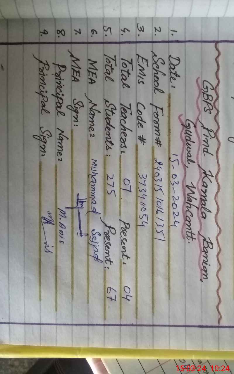 | EMIS Code: 37340054 | Name of School: GPS PIND KAMALA BANIAN | |||