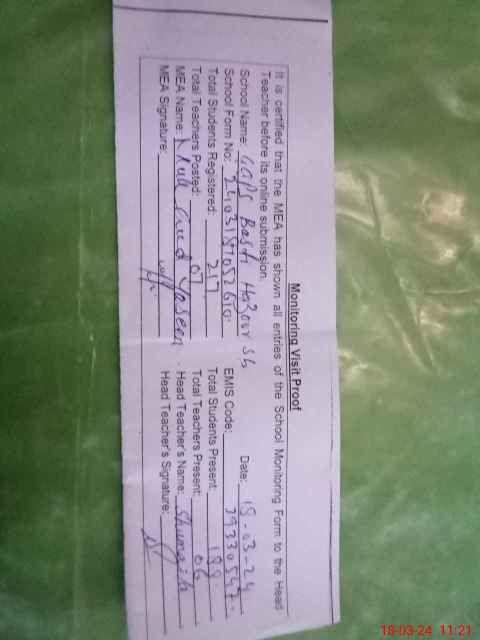 | Certified that this School was Inspected by the Undersigned MEA/DMO Today and the Information Stated Above is as Per Record. | |||||