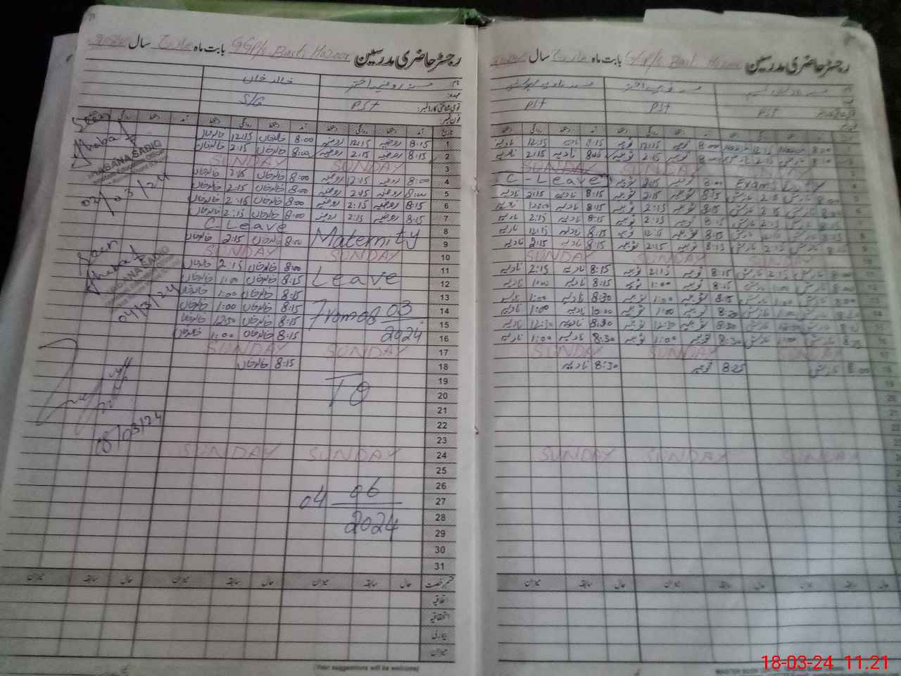 | 35**** | Ma**** Iq**** | PST | Regular | 0 | 0 | 0 | 0 | 0 | 0 | 0 | 0 | 0 | Exam Duty |