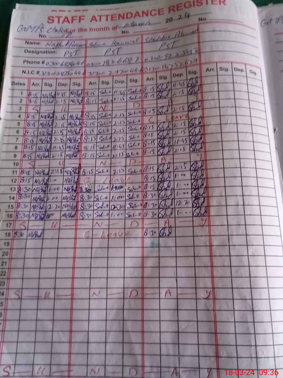 | Name: Nu**** Pe**** Designation: (School Headmaster's/Headmistress's) PST Phone/Cell Number: 03**** |
