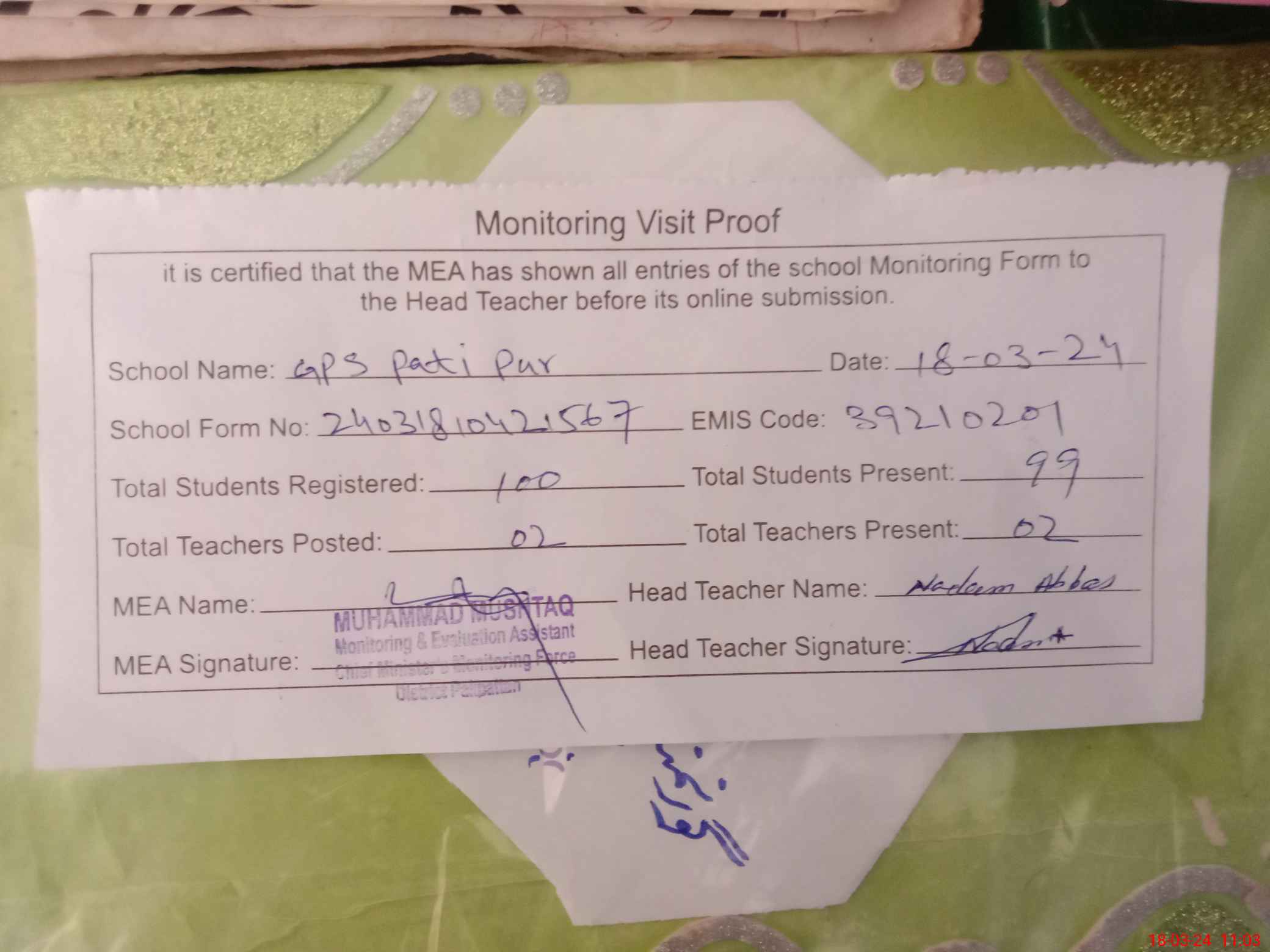 | EMIS Code: 39210201 | Name of School: GPS PATI PUR PO KUMHARI WALA PAKPATTAN | |||
