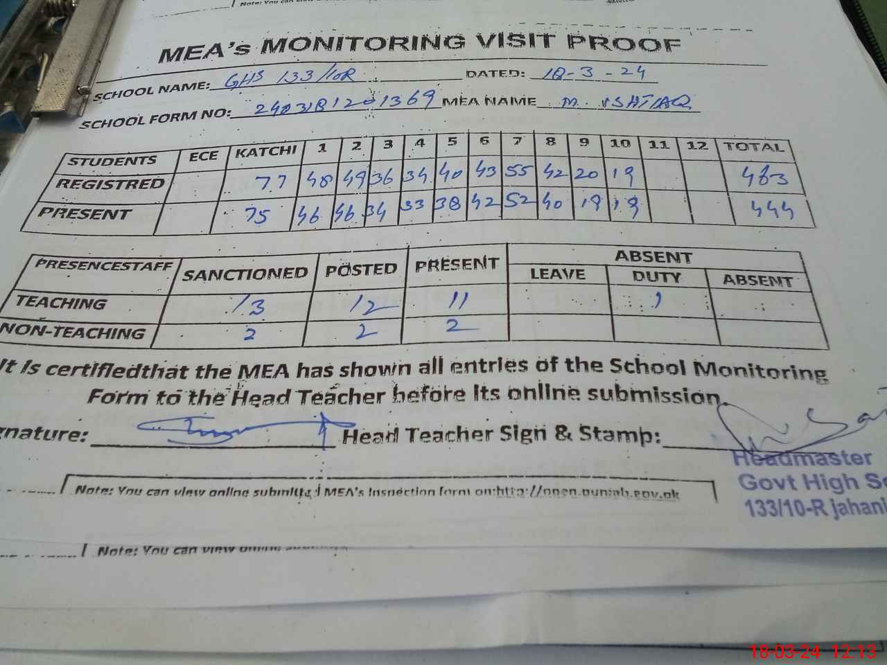 | EMIS Code: 36440086 | Name of School: GHS 133/10-R, JAHANIAN | |||