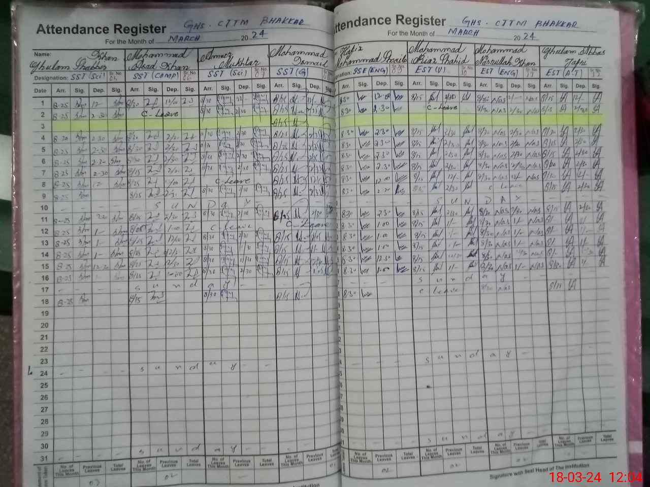 | 38**** | Mu**** La**** | 5 | 1 | 0 | 0 | 0 | 0 | 0 | 0 | 0 | 0 | 0 | Exam Duty |