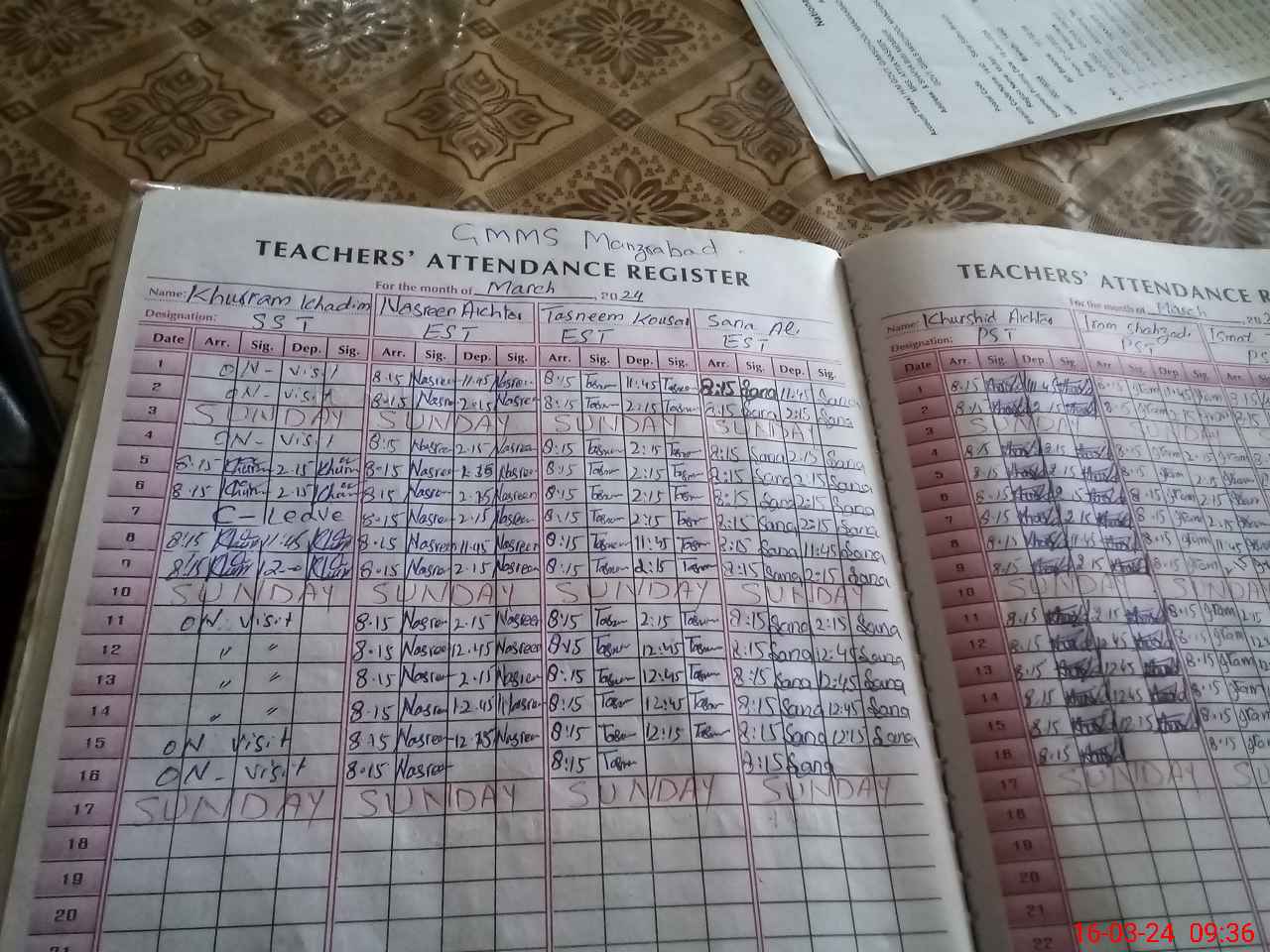 | CNIC | Full Name | Designation | R/C | Absence During Last Calender Month |