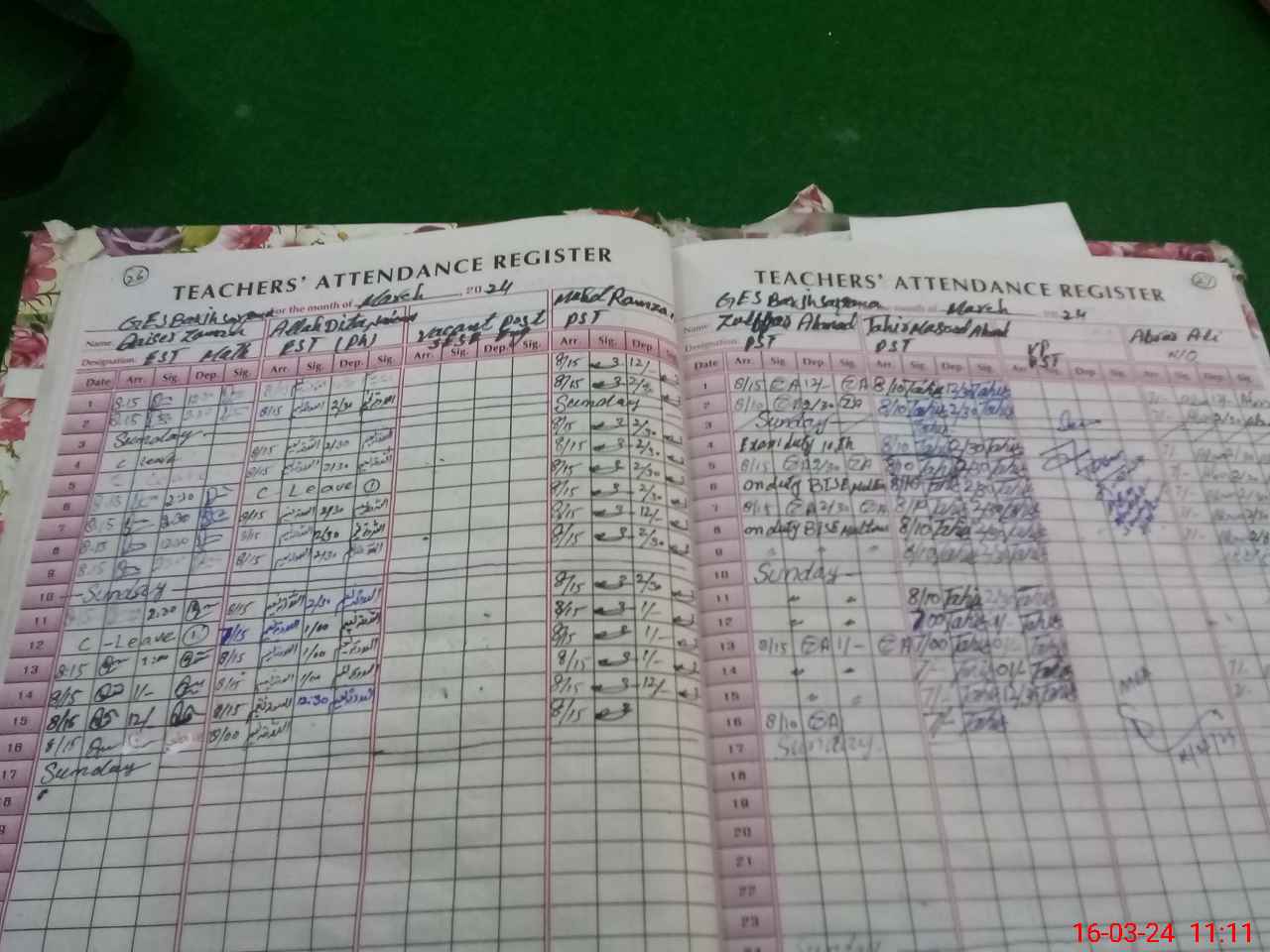| 36**** | Mu**** Ir**** Ba**** | Regular | 0 | 0 | 0 | 0 | 0 | 0 | 0 | 0 | 0 | Exam Duty | |