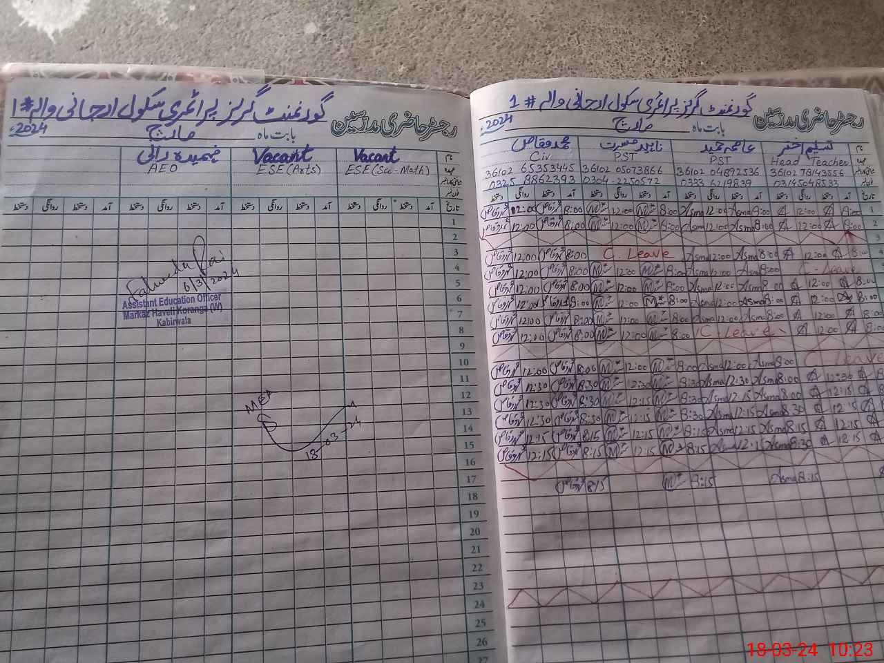 | Name: TA**** AK**** Designation: (School Headmaster's/Headmistress's) PST Phone/Cell Number: 03**** |