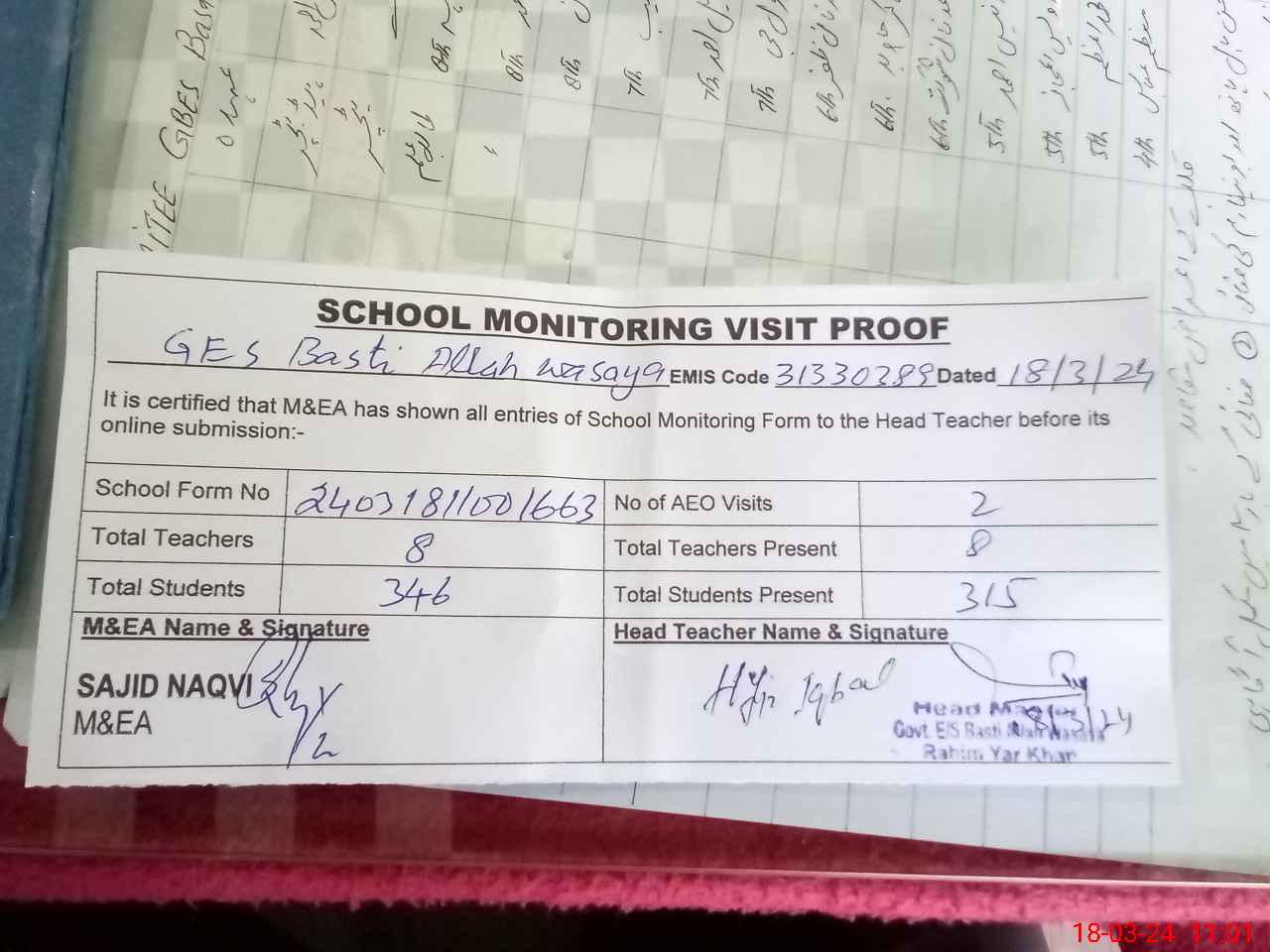 | EMIS Code: 31330389 | Name of School: GES BASTI ALLAH WASAYA | |||