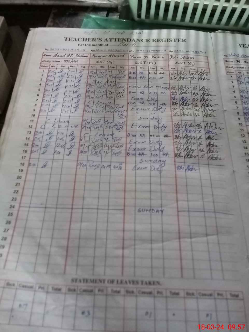 | 36**** | Ra**** Mu**** Ka**** Ra**** | Regular | 0 | 29 | 0 | 0 | 0 | 0 | 0 | 0 | 0 | Exam Duty | |
